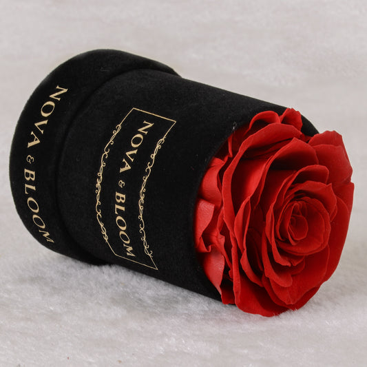 Single Black Velvet Round Eternal Bloom | Red Rose
